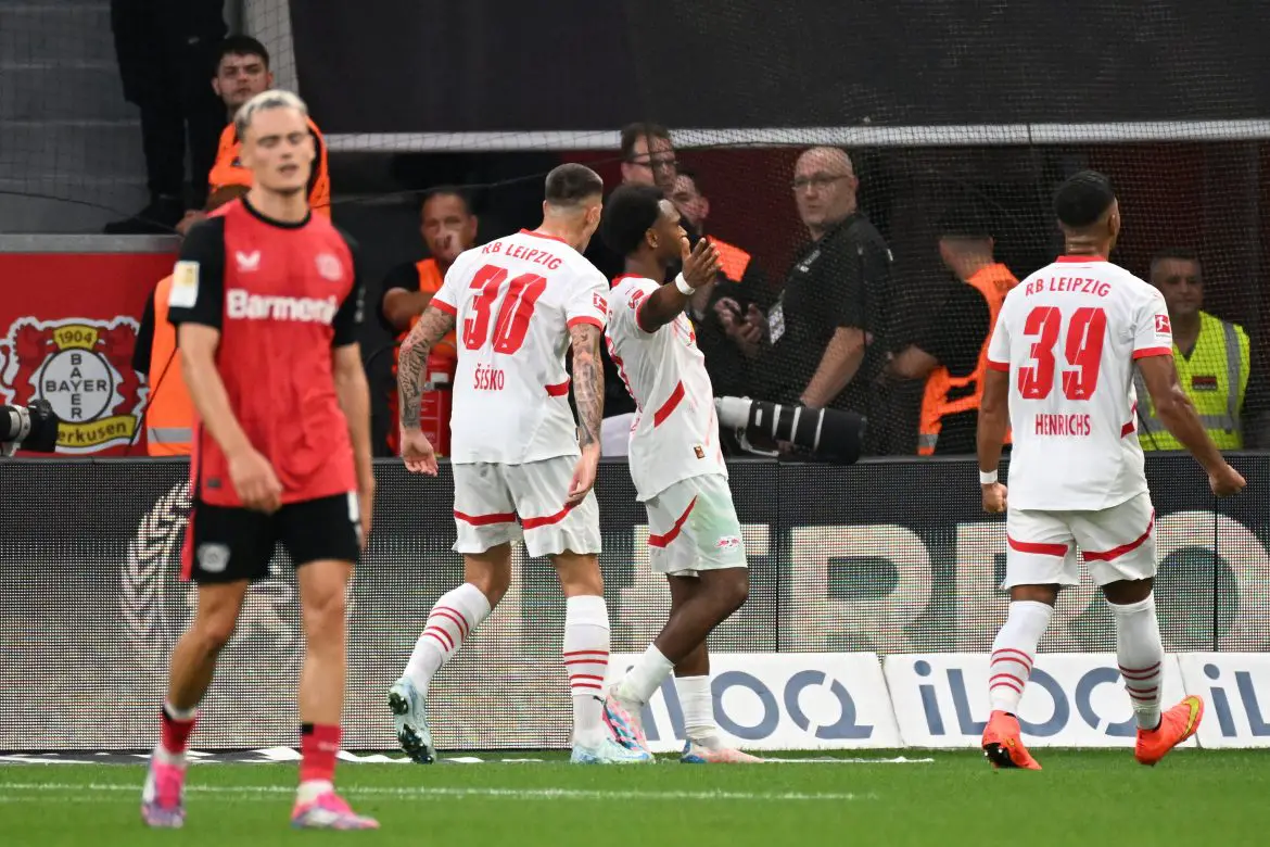 Leverkusen were the dominant side in the first half but struggled to make things click right until Leipzig head coach Marco Rose was sent off for protesting a challenge from Jonathan Tah on Loïs Openda. Then Leverkusen started to get into their flow and opened the scoring when Jeremie Frimpong was played through, forcing Bitshiabu to completely miss his slide tackle before slotting past Peter Gulacsi.