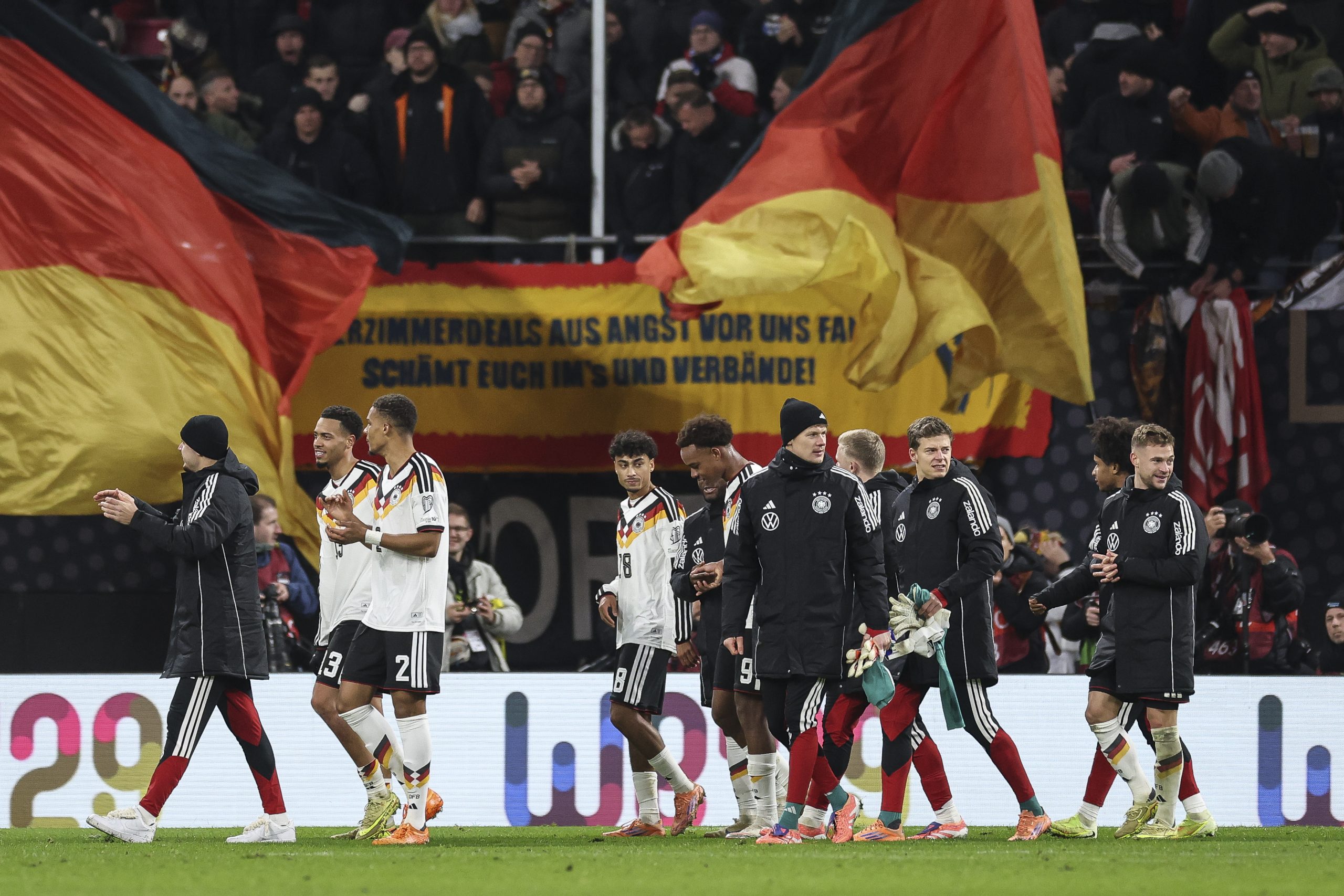 Fanszenen Deutschland has mobilized, among others, heavy hitters within the German fan scene such as Dortmund’s Südtribune Alliance, Bayern’s Südkurve München, and Stuttgart’s Commando Cannstatt. Protests already took place in Leipzig last weekend in the city ahead of the German national team’s crucial World Cup qualifier at the Red Bull Arena. Some banners (pictured above) made it into the stadium.